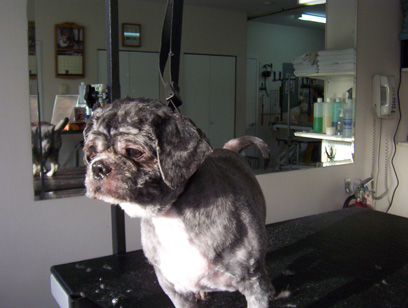 Here are some photos of severe matting and the resulting very short trim. It is very uncomfortable for the dog to be severely matted.